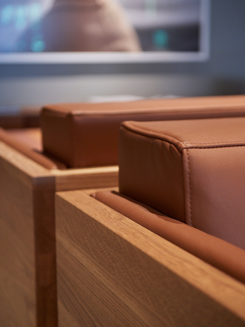 The Indeks Box Sofa is our take on a mid-century classic that we have designed and made in Norway. It was originally created for Oslo’s iconic Indekshuset; a brutalist building from the 1960s. With its solid wood exterior and its soft upholstered interior the sofa is beautiful from every angle, including the back. This sofa is suitable for both private and public spaces.