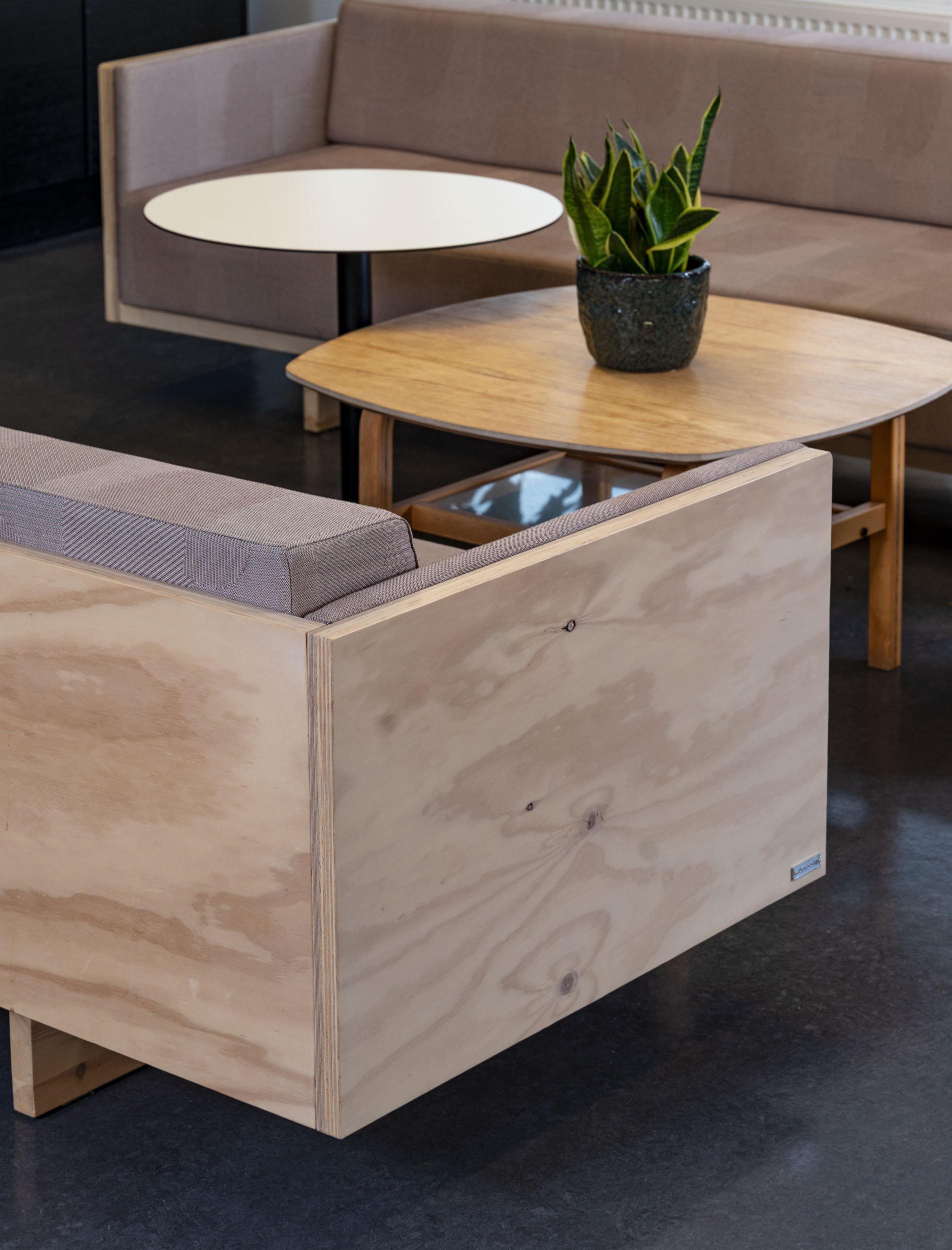 The Re-Box Sofa is the first piece of our original collection that we have remade in recycled and reused materials. The frame is made from reused plywood, while the upholstery is 100% recycled polyester and PFAS-free. The Re-Box Sofa can also be upholstered in surplus fabric. The sofa is based on our classic Indeks Box Sofa design, see more pictures and a price estimate here: