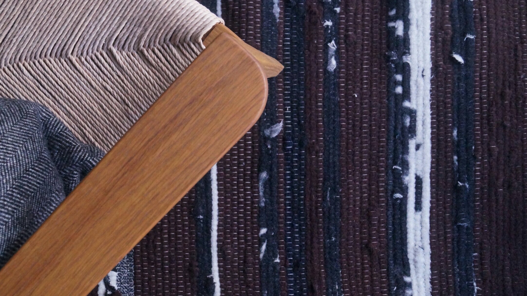 We at Thorsønn wanted to create a modern interpretation of the traditional fillerye technique, something that accentuated the materials that went into the product. We cut scraps into strips and pieced them together with knots that when woven into the rug massage your feet when you walk on it. Through many tests and prototyping we developed a pattern that we describe as a “deconstructed” fillerye with loose ends creating a fringe along the sides which shows how the rug is constructed. This fringe also compliments the clean lines of the Thorsønn sofas.